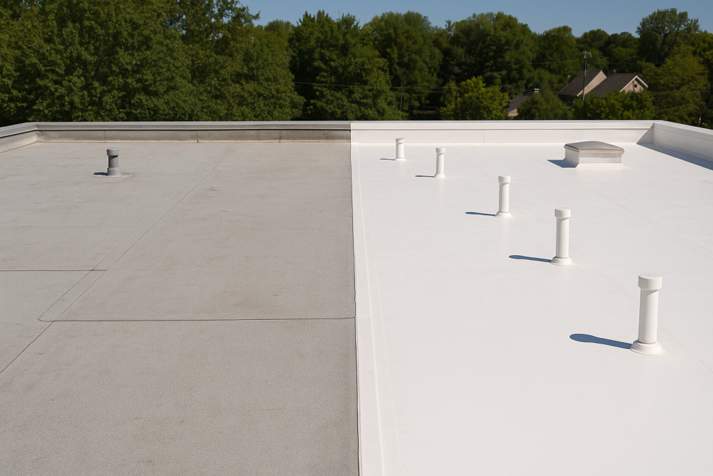 If you’re researching commercial roofing, you’ve likely come across two top contenders for flat or low-slope roofs: TPO (Thermoplastic Polyolefin) and PVC (Polyvinyl Chloride).